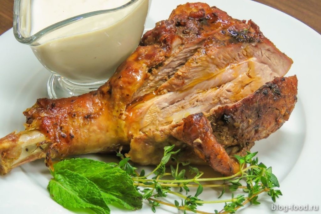 Индейка получается очень сочной и нежной, при том, что готовить её проще простого. Начнем с того, что мясо индейки очень полезное. Индейку выращивают без применения гормонов роста и антибиотиков, а в цене она не намного дороже курицы. Мясо индейки считается диетическим, и оно очень легко усваивается. На нашу большую семью уходит 2 кг голеней индейки. Мой муж её готовит так: Срезать мякоть с голени индейки, и каждый кусочек окунуть в маринад на 20 секунд. Далее положить пропитанные маринадом кусочки в емкость для запекания. Накрыть полиэтиленовым пакетом и поставить в холодильник на ночь. Запекать в духовке на среднем огне около часа до готовности. Состав маринада: 1 головка чеснока измельчается на тёрке или в блендере. 10 столовых ложек соевого соуса. Можно добавить 1 столовую ложку растительного масла, 2 столовые ложки уксуса, чайную ложку паприки. Приготовленная таким способом индейка очень вкусная даже в холодном виде. Попробуйте, не пожалеете!