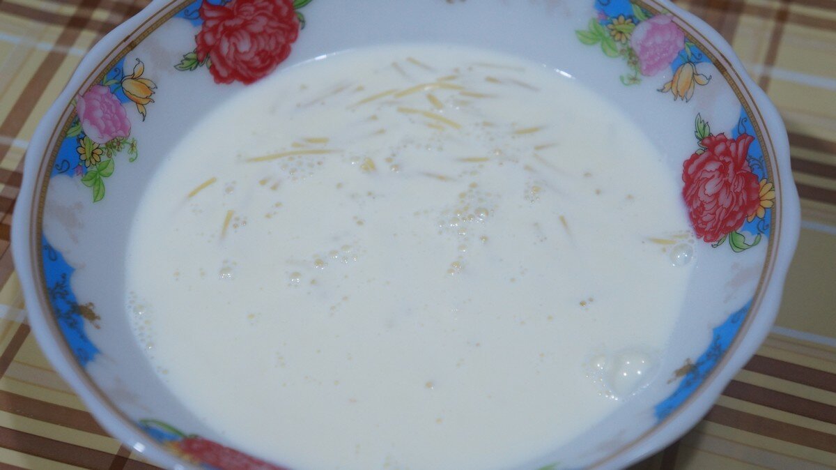Это блюдо готовили даже в школе и в садике. Наливаем молоко в кастрюлю. Ставим на плиту. Добавляем немного соли и сахара. Когда молоко начнёт закипать, высыпаем в кастрюлю тонки макароны. Перемешиваем и варим 3-4 минуты. Точное время варки макарон смотрите на упаковке. Суп готов.