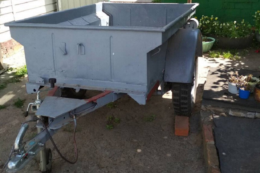 Изначально в документах прицеп имел конкретное название "Автомобильный прицеп USA/Reber". Но в своем ответе ГАИ назвала его предметом, "внешне схожим с одноосным прицепом серого цвета". Ну и ладно, назвали и назвали. Прицеп длительное время эксплуатировался для нужд МЧС, пока не был выставлен на торги.