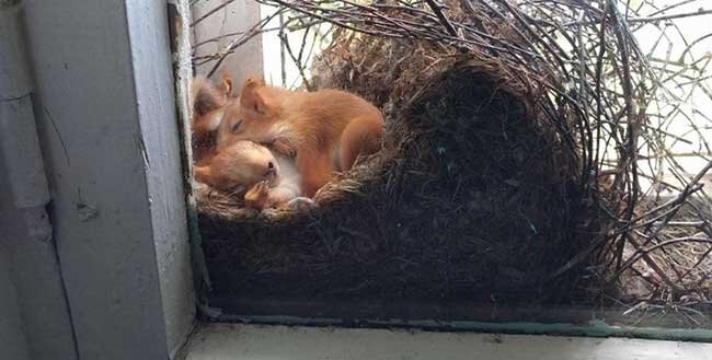 Эта история берет начало в 2015 году, когда две сотрудницы из Омского дома творчества спасли и выходили белку, после чего отпустили ее на волю…через некоторое время белка вернулась к своим спасителям и сделала гнездо прямо в оконной раме… Через некоторое время появились малыши. Как только малыши подросли белка вывела их на волю и сама пропала, через год ситуация повторилась…..белка снова сделала гнездо в оконной раме и снова родила малышей, так повторяется каждый год. При этом стоит отметить, что белка совсем не ручная, так она не подпускает никого к своему гнезду, но какая-то сила заставляет белку возвращаться к своим спасителям год за годом.