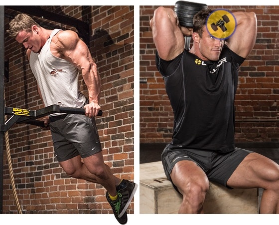 Данная программа тренировки предназначена для спортсменов, уже имеющих некоторый опыт. Рекомендуемый уровень подготовки - 16-25 отжиманий от пола, с руками на ширине плеч, локти прижаты к корпусу. Порядок выполнения Все упражнения выполняются друг за другом в том порядке, в котором изложены в статье. Отдых между упражнениями 30-45 секунд. Количество повторов во всех упражнениях максимальное. Максимум наступает в тот момент, когда начинают неметь мышцы. Когда при очередном повторе онемели мышцы - не останавливайтесь! Сделайте еще 1-2 раза. Это даст сигнал организму, что мышцы не справляются и инициирует их рост. Тренировки необходимо повторять по следующему принципу. Перестали болеть мышцы - ждем еще один день и тренируемся. Если мышцы вообще не заболели - ждем один день и тренируемся. Для тренировок понадобится брусья и турник. Также необходимо будет отжиматься от земли, поэтому рекомендуем одеть перчатки. Упражнения Разминка Для начала необходимо разогреться. Можно пробежаться, поп