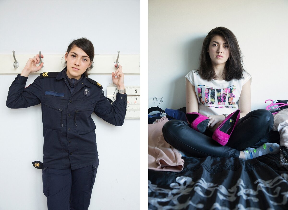 Нидерландский фотограф Вивиан Койлардс задумала интересный фотопроект, показывающий обратную сторону жизни голландских девушек-военнослужащих. "За ее униформой" - такое название получила эта работа, показывающая разницу между выделяющейся среди людей женщины в форме и ее повседневным человеческим обликом.