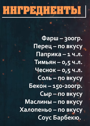 Давно хотел придумать что-нибудь на тему того, как подать что-нибудь мясное к праздничному столу и всех удивить, так и родился этот чудесный рецепт. Итак, для начала нам нужно затюнинговать фарш (я использовал фарш из мраморной говядины). Кидаем в тарелку 300г фарша. Добавляем сюда по вкусу свежемолотого перца и соль, потом чайную ложку паприки, пол чайной ложки сушеного тимьяна, пол чайной ложки сушеного чеснока. После этого фарш следует тщательно перемешать. Следующий приём для приготовления мы заимствуем у японской кухни: помещаем для удобства на циновку пищевую плёнку и выкладываем ломтики бекона: ВАЖНО: попробуйте бекон на соль, прежде чем солить фарш. В первый раз у меня получилось слишком солёно, потому что я купил не тот бекон. Далее берем фарш, и заполняем им всю площадь бекона, оставив сверху и снизу немного места: Добавляем начинку: кладем сверху на фарш нарезанный сыр и выкладываем в цен