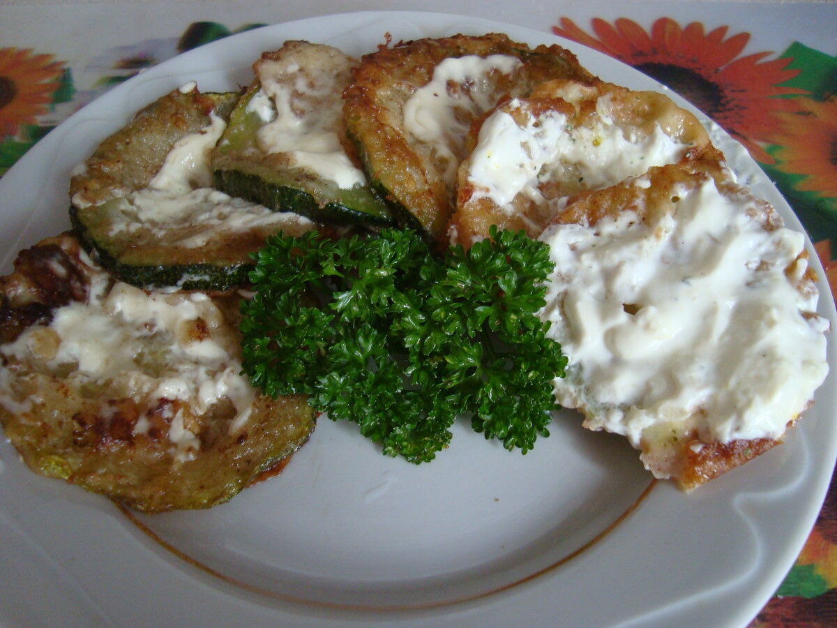 Добрый день дорогие подписчики и читатели моего канала! На дворе у нас лето и как мы знаем это время созревания многих овощей. И сегодня мы с вами будем готовить жареные кабачки в чесночном соусе. Это блюдо не только очень вкусное, но и полезное! Для приготовления нашего блюда нам потребуется: свежие кабачки, мука, пару куриных яиц, майонез, сметана, 5 средних зубчиков чеснока и соль. И так приступим, берем наши кабачки хорошенько их моем и отрезаем хвостики затем нарезать их кружками, примерно по сантиметру. Подготавливаем тарелочку с мукой и тарелочку с взбитыми яйцами. Ставим сковородку на плиту и наливаем туда растительное масло. Как масло в сковородке нагрелась, берём наши нарезанные кабачки обволакиваем их в муке затем в сбитом яйце. Ложем их на сковородку и обжариваем с 2 сторон до появления золотистой корочки. Зачем приступаем к приготовлению нашего соуса, наливаем в глубокую мисочку майонез и сметану в одинаковых пропорциях, грамм по 400 и туда же выдавливаем зубчики чес