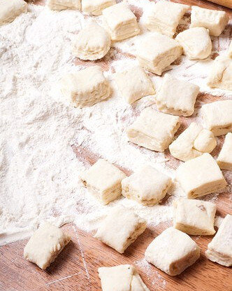 2. Муку просеять на творог и вымесить тесто руками, пока оно не станет пластичным.