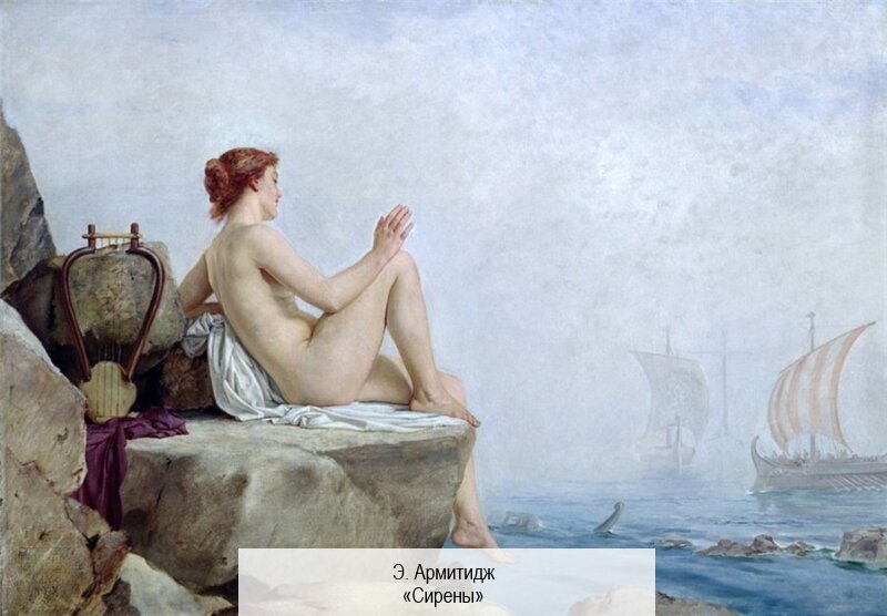 Образ сирен является одним из самых популярных, о чем говорит история древней Греции. Впервые об этих морских хищницах рассказывается Гомером в поэме «Одиссея». Проплывая между скалой Сциллы и островом Цирцеи, Одиссей залил уши своей команды воском, чтобы не слышать манящее пение коварных хищниц. Себя же он велел накрепко привязать к мачте, пока корабль не пройдет мимо мыса сирен.