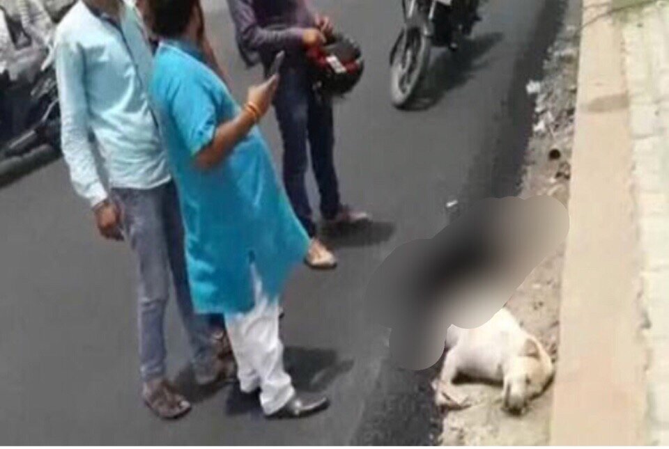 Бездомная собака уснула на обочине дороги на которой производились дорожные работы, совершенно не обращая внимания на то, что происходит вокруг. Работники видели собаку, но не стали ее прогонять или будить, а попросту залили ее горячей смолой после чего закатали животное в асфальт.