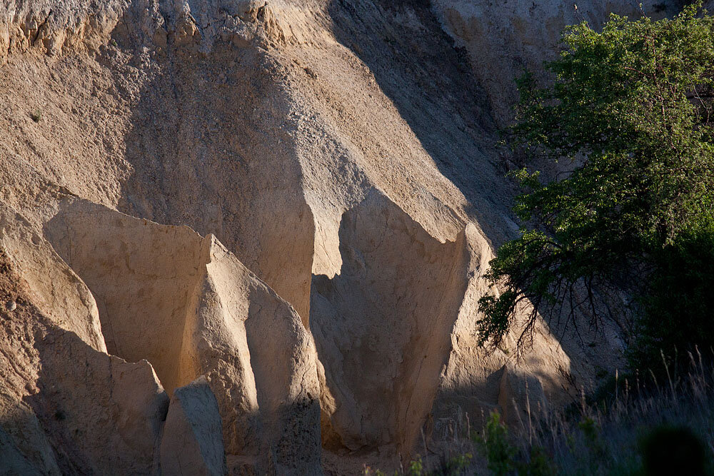 Солнце припекает и я продолжаю ежедневные вылазки,изучая интересные места и красоты. У соседей и местных жителей узнаю всякие истории про здешние места. В этот раз меня направил Кузьмич. Километрах в десяти есть каньон, размытый водой с полей. Овраг получился настолько здоровенный, что мужики начали брать там песок и глину на свои нужды. Однако занятие это вскоре стало опасным - случались обвалы. Поговаривают даже, что кого-то там присыпало так, что даже не нашли. Я конечно решил, что это россказни и не поверил. Ночи стали теплее и я решил отправиться с ночевкой. Собрал еду, спальник и в путь. Пока добрался и нашел место, уже вечерело. Солнце медленно плыло к горизонту, тени скользили по отвесным песочным глыбам, зрелище завораживало, но становилось прохладно. Я решил провести осмотр пораньше утром, а пока натаскал дров на ночь и устроился под дубом. Языки пламени жадно облизывали сухие поленья, мерно потрескивая. Ночь оказалась свежей и звездной. Взошла луна, придавая четкие очертан