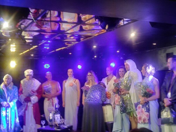 Как же оно преобразилось за два года! Сюда я впервые пришла в этот театр. Кафе было маленьким и тесным, и Демон с горящим взором бегал по узкому коридору меж стульев, расширяя Вселенную и паря над нами. Сейчас это очаровательное кафе с живой музыкой и небольшой сценой. И вот на этой сцене разыгралась прямо-таки новогодняя комедия ака фильма. Да-да, очень кинематографичный получился спектакль. Ощущался "наезд" камеры, когда одна сцена сменяла другую, выхватывая того, чья реплика была ключевой. Накладывались и сменяли ритмы и мелодии. Тут, как всегда, впрочем, реальность ожил