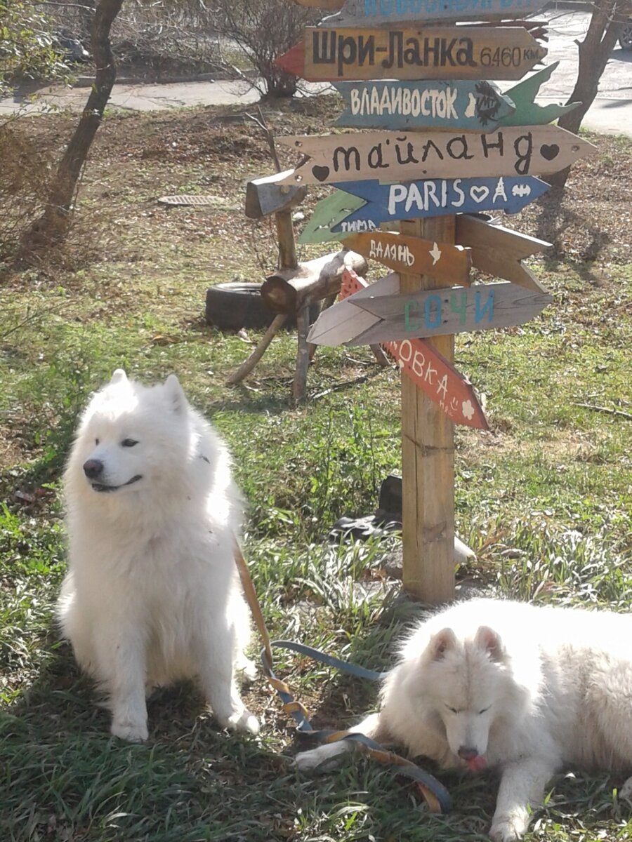 Во Внуково наше появление вызвало фурор. Люди улыбались, доставали мобильники, чтобы запечатлеть моих спутников – двух самоедских собак. А мне даже реагировать на столь бурное внимание было сложно. Ведь надо было не только вести «звезд» на поводке, но и тащить тележку с двумя большими железными клетками и парой багажных сумок.