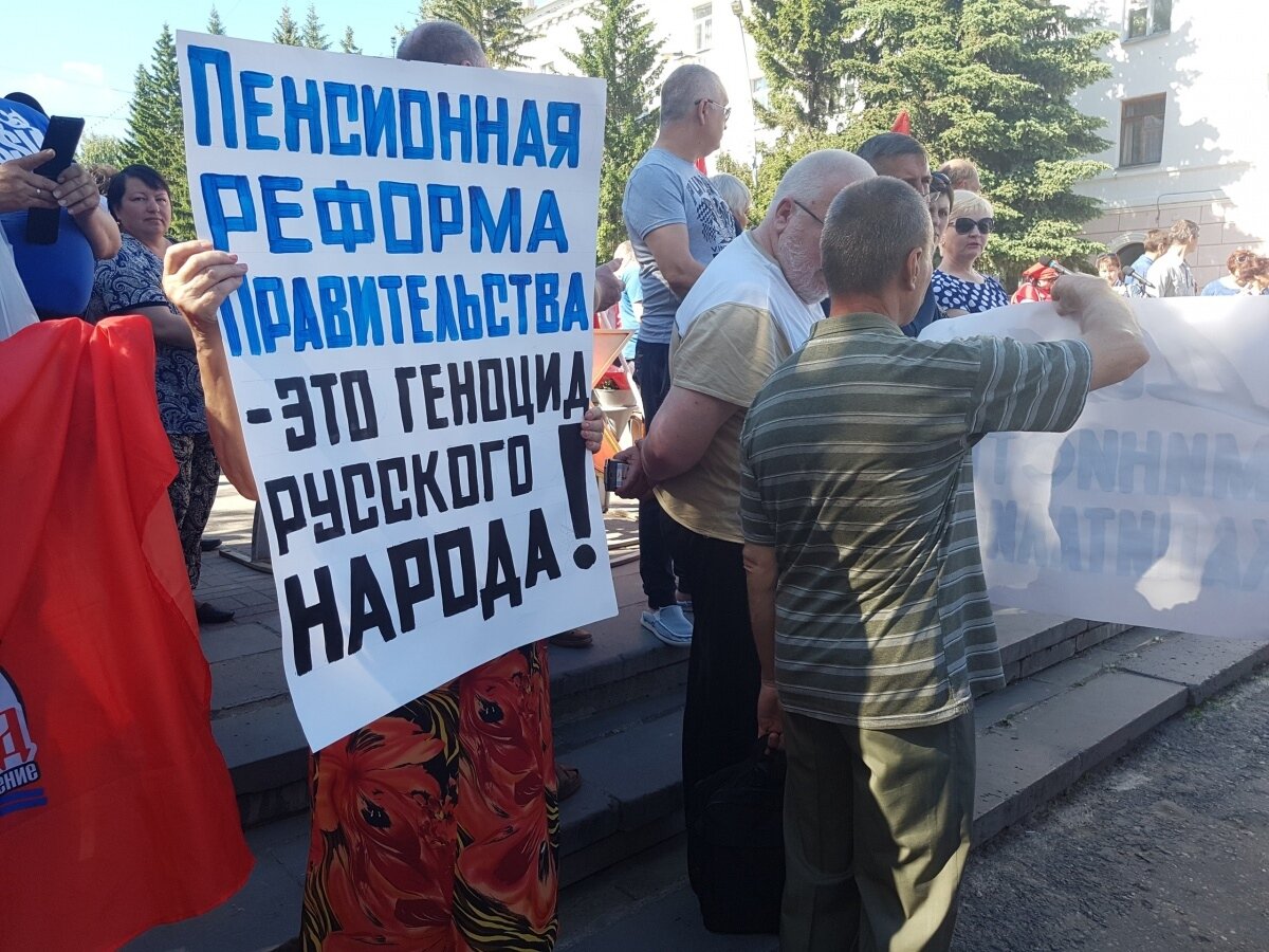 1-го июля у кинотеатра «Россия» стали собираться жители Кургана, которые недовольны планируемой пенсионной реформой. По законопроекту правительства, внесённому на рассмотрение в Государственную думу, пенсионный возраст планируют повысить для женщин до 63 и для мужчин до 65 лет.