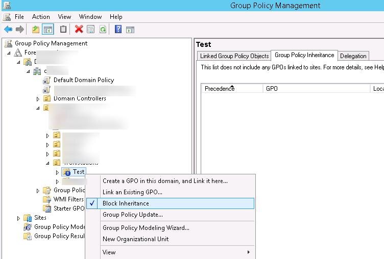 Чтобы убедиться, что проблема связана именно с доменными GPO, создайте в домене отдельную OU, перенесите в нее проблемный компьютер и с помощью консоли Group Policy Management Console (GPMC.msc) включите блокирование наследование политик для данного контейнера (Block Inheritance). Таким образом на компьютер перестанут действовать все доменные политики (исключение — политики, для которых включен режим Enforced) .