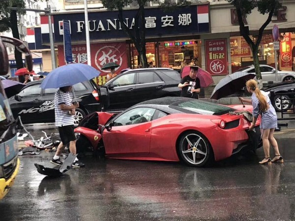 Убедительная просьба: если вы решите не читать всю статью, хотя бы прокрутите до конца страницы!!! В Китае мощные и дорогие автомобили стоят дороже, чем в любой другой стране из-за высоких налогов, включая налоги на импорт. А поскольку в азиатском государстве задействовано наибольшее количество автомобилей в трафике, часто случаются аварии с их участием. Последний такой инцидент произошёл несколько дней назад. Женщина, которая впервые за рулём Ferrari 458 Italy, серьезно повредила ее после нескольких минут с момента аренды! Авария произошла в городе Wenling и была заснята камерой наблюдения. Двигаясь по мокрой дороге, водитель потерял контроль над машиной, которую занесло и врезалась в BMW, а последний в Nissan - на противоположной стороне. К счастью, никто не пострадал. На кадрах снятые женщиной за рулем, можно заметить что система контроля тяги была отключена по неизвестной причине.