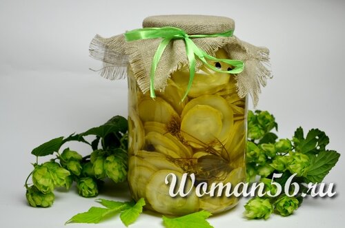 Тонкие кружочки кабачков хорошо сохраняют форму и демонстрируют достаточную плотность в заготовках даже зимой. Пряный маринад не будет острым, но в нем весьма пикантно переплетутся ароматы укропных розеток и лавровых листьев. Маринованные кабачки часто сопровождают мясные блюда: куриная грудка в сухарной панировке так нуждается в «спутнике» с приятным кисло-пряным вкусом. Кабачками украшают печеночные паштеты, крупяные запеканки. Маринованные кружочки сворачивают пополам и нанизывают на шпажки, когда готовят праздничную закуску из мяса и овощей. В рецепте подробно описано как делать маринованные кабачки на зиму без стерилизации. Ингредиенты рецепта: В рецепте не используется стерилизация. Приготовление маринованных кабачков на зиму Желательно найти молодые некрупные кабачки, чтобы не пришлось срезать шкурку, затем их хорошо промыть. Если на плодах есть повреждения и вмятины, то они не должны попасть в заготовку на зиму. Стерилизация в рецепте отсутствует, поэтому мари