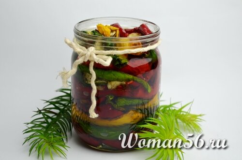 Все любят быстрые «ленивые» рецепты заготовок на зиму, чтобы баночки волшебным образом заполнялись разными вкусностями. Вяленый перец на зиму как раз относится к категории самых простых блюд, у кухонного стола придется постоять не более четверти часа. Результат вас восхитит, ароматный вяленый перец - изысканное «овощное лакомство» на зиму. Для вяленого перца не нужны соусы, цветные пряные кусочки подают просто на квадратиках ржаного или пшеничного хлеба. Если же вы решите приготовить итальянскую фокаччу, вяленый перец обязательно пригодится. Ингредиенты рецепта: Заготовка вяленого перца на зиму. Фото рецепт: Баночка с разноцветными дольками вяленого перца смотрится роскошно. Вкус этих долек будет разным: в зеленом перце всегда чувствуется легкая терпкость, а красный отличается особой нежностью, желтый по каким-то неведомым причинам сохраняет аромат летней свежести. Сладкие плоды моют, срезают хвостики, вынимают серединки, нарезают треугольниками. Слишком мелкая нарез
