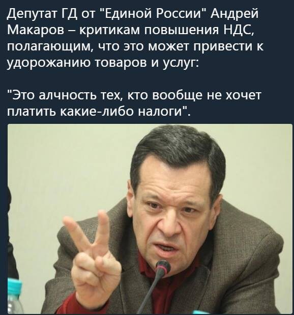 Это что же получается. В 2016 Макаров говорит что у нас денег как грязи, но подворовывают, а в 2018 НДС повышает? Как так? Кто же тогда украл эти деньги? Такая вот незамутненность в отдельно взятом депутате Госдумы.
