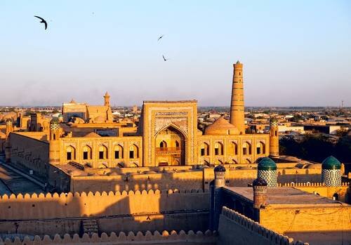Хива — древний город Узбекистана. По данным историков 2500 лет назад город уже существовал. Удивительно, но только здесь сохранились абсолютно нетронутыми средневековые постройки, благодаря которым можно увидеть всю красоту Востока. В городе Хиве древности буквально на каждом шагу, это настоящий музей под открытым небом, но в котором продолжают жить люди. Здесь смеются и играют дети, сушится выстиранное бельё, звучит современная музыка, но ощущение что вот сейчас из-за угла появится ковер-самолёт с сидящим Алладином, присутствует постоянно. Выделить что стоит посетить первым, а что вторым, в Хиве невозможно. Каждый кирпичик, каждая улочка заслуживают быть увиденными. Но всё же есть основные достопримечательности, посмотреть которые просто обязательно. Ичан-Кала Скорее всего, знакомство с Хивой стоит начать именно с этого архитектурного комплекса. Город в городе — именно это и есть Ичан-Кала, ставший первым в Средней Азии городом, который находится под защитой Юнеско. Ича