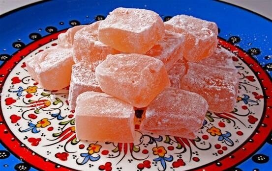 Рахат-лукум - кулинарный пошаговый рецепт с фото Рахат-лукум – это восточный десерт, который делается из крахмала, апельсинового и лимонного сака и перечной мяты. Рахат-лукум переводится с турецкого как «отдых для рта». Ингредиенты: -Сок половины среднего апельсина -Сок половины крупного лимона -300 мл воды -Цедра одного лимона -Цедра одного апельсина -3 стакана сахарной пудры -2/3 стакана крахмала -15 гр. желатина -Пищевой краситель -4 капли мятной эссенции Рецепт приготовления рахат-лукума -Для приготовления лукума берем толстодонную кастрюлю и смешиваем в ней сок апельсина и лимона, добавляем пол стакана воды, сахарную пудру и цедру. -Ставим кастрюлю на средний огонь и готовим все время помешивая, пока сахар полностью не растворится. Если на стенках кастрюли образуются сахарные кристаллы, то их необходимо сметь вниз. -Когда содержимое кастрюли закипит, уменьшаем огонь и продолжаем готовить еще 5 минут не перемешивая. -Разводим крахмал в поло