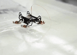 А медные пластины, покрытые гидрофобным полимером, обеспечивают роботаракану устойчивость на воде. А при подаче на них напряжения, пластины начинают пропускать воду и робот тонет, опускаясь на дне, где он может продолжать двигаться.