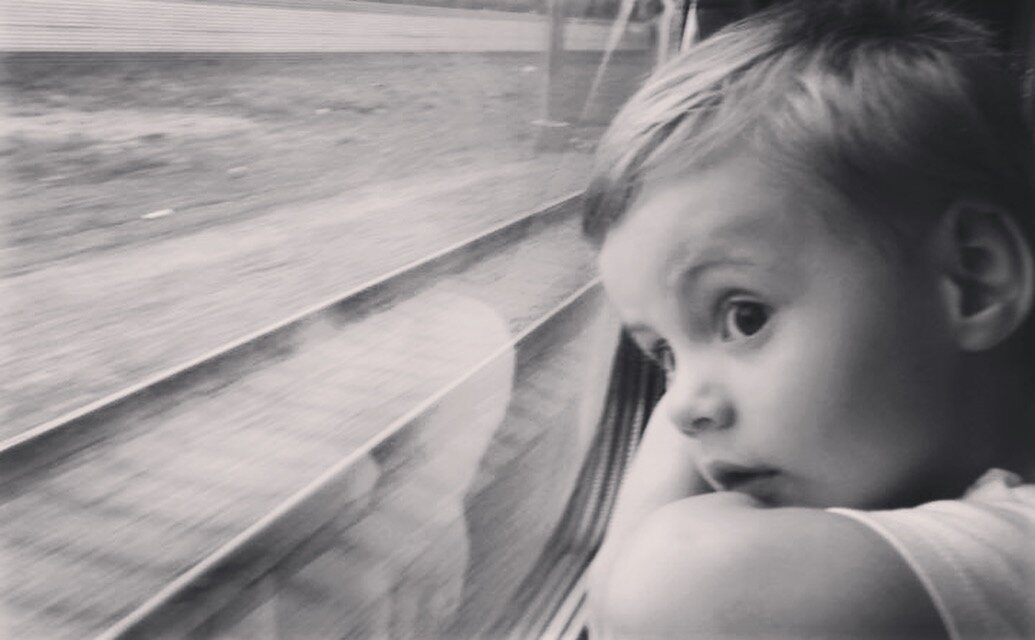 Вот еще один маленький пассажир. Он едет с папой в метро. Поезд отошел от станции и въехал в туннель. Мальчик потрясен.