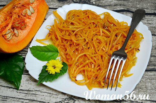 Все наслышаны о потрясающих лечебных свойствах тыквы, поэтому старательно ее запекают и отваривают, чтобы внести разнообразие в зимние заготовки приготовленные в домашних условиях. Но существует еще один потрясающий способ: тыква остается сырой, следовательно, она сохраняет все полезные вещества. Вкус блюда - изумительный, никого не придется уговаривать попробовать хотя бы ложечку, тарелка с маринованной тыквой опустеет моментально. Ингредиенты рецепта: Приготовление тыквы по-корейски в домашних условиях В популярных салатах по-корейски обязательно присутствует этап быстрого маринования. Нарезанные овощи впитывают острый маринад и почти утрачивают свой первоначальный вкус. Тыква тоже может оказаться «неузнанной»: по внешнему виду она похожа на морковь, но отличается большей сочностью и своеобразной «нежностью». Берут кусочек тыквы с толстой качественной мякотью, моют его и чистят. Тыкву натираю так, чтобы получились тонкие длинные полоски. Самый удобный кулинарный инс