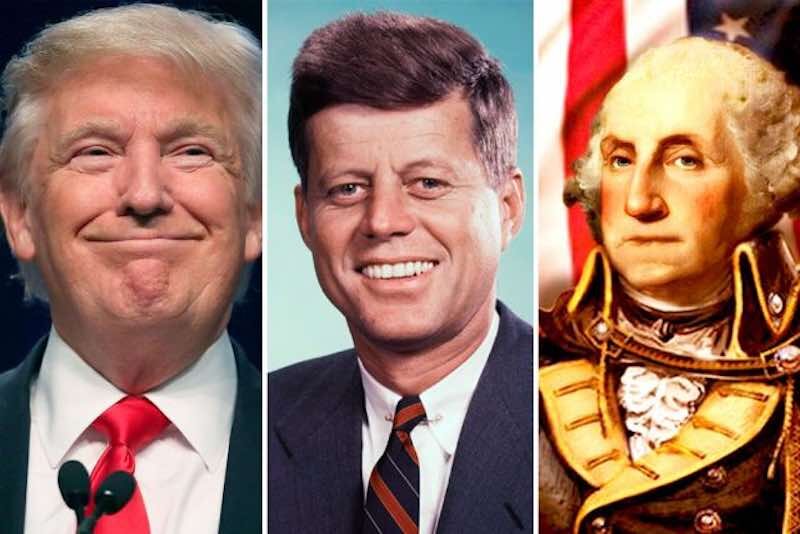 Первым президентом Соединенных Штатов Америки стал Джордж Вашингтон. В январе 1789 года, по решению Конгресса, была создана комиссия, состоявшая из 69 выборщиков, 4 февраля того же года все они отдали свои голоса за Джорджа Вашингтона. В 1792 году Вашингтон, опять же единогласно, был переизбран на второй срок. Таким образом, он стал единственным президентом США, против которого не было подано ни одного голоса. Вашингтон не состоял ни в одной из партий, отвергая даже саму идею партийности. 4 марта 1841 года в должность президента США вступил Уильям Генри Гаррисон. На церемонии инаугурации он произнес самую длинную речь, она продолжалась два часа и состояла аж из 8578 слов. В этот день новый президент простудился и ровно через месяц, 4 апреля, скончался от пневмонии. Это самый короткий срок пребывания в должности первого лица Соединенных Штатов Америки. А самую короткую инаугурационную речь произнес первый президент Америки Джордж Вашингтон - всего 133 слова. Самым многодетным отцом среди всех президентов США был Джон Тайлер, занимавший этот пост в 1841 - 1845 гг. Тайлер был женат дважды, став отцом 15 детей, 8 от первого брака и 7 - от второго. При этом, второй раз джон Тайлер женился уже в солидном возрасте, ему было 54 года. его супругой стала Джулия Гардинер Тайлер, которая была младше мужа на 30 лет. В последний раз Джон Тайлер стал отцом, когда ему уже перевалило за семьдесят лет. Самым миниатюрным из всех президентов был Джеймс Мэдисон, его вес составлял всего 45 килограммов при росте 164 сантиметра. Авраам Линкольн с ростом в 195 сантиметров вполне мог бы сделать успешную баскетбольную картеру, а вот президентом-тяжеловесом был Уильям Тафт, весил он почти 140 килограммов, для него в Белом доме пришлось даже установить более просторную ванну, прежняя для него оказалась тесновата, выбирался он из нее с трудом. Никто из президентов не смог бы конкурировать с Уллисом Грантом по количеству выкуренных сигар - до 20 штук в день. Увидеть его без сигары было практически невозможно. Именно это пагубное пристрастие и стало причиной смерти, Грант скончался от рака гортани. Незадолго до своей кончины экс-президент успел завершить работу над мемуарами. Президент США, согласно конституции страны, не может быть избран более чем на два срока. Исключение было сделано только для Франклина Рузвельта, который был избран четыре раза, в это время шла Вторая мировая война. Умер Рузвельт на посту президента 12 апреля 1945 года. В Белом доме его можно было с полным основанием называть "свои человеком", он состоял в родстве с одиннадцатью своими предшественниками. С 1959 года в состав США входят 50 штатов. А первым президентом, который, находясь на своем посту, сумел посетить все из них, стал Ричард Никсон. Он же стал единственным в истории страны президентом, который подал в отставку, не дожидаясь окончания срока. Это произошло 9 августа 1974 года. Он оказался замешан в политическом скандале, получившим название «Уотергейт», и решил не дожидаться грозившего импичмента. Все президенты Соединенных Штатов Америки были женаты. Но, как известно, правил без исключений не бывает. Холостяком являлся Джеймс Бьюкенен, занимавший пост главы Белого дома с 1857 по 1861 гг. В молодости он планировал жениться, но невеста скончалась незадолго до свадьбы. Потрясенный потерей Бьюкенен заявил, что потерял свое счас