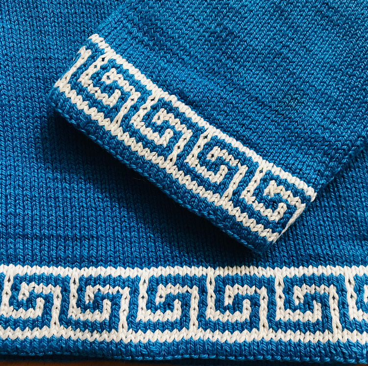 Меандры - удивительны! Узор образуется и рабочей нитью и нитью фона. Вяжешь узор синими нитками по белому фону, а потом глядь - а меандр-то белый!
