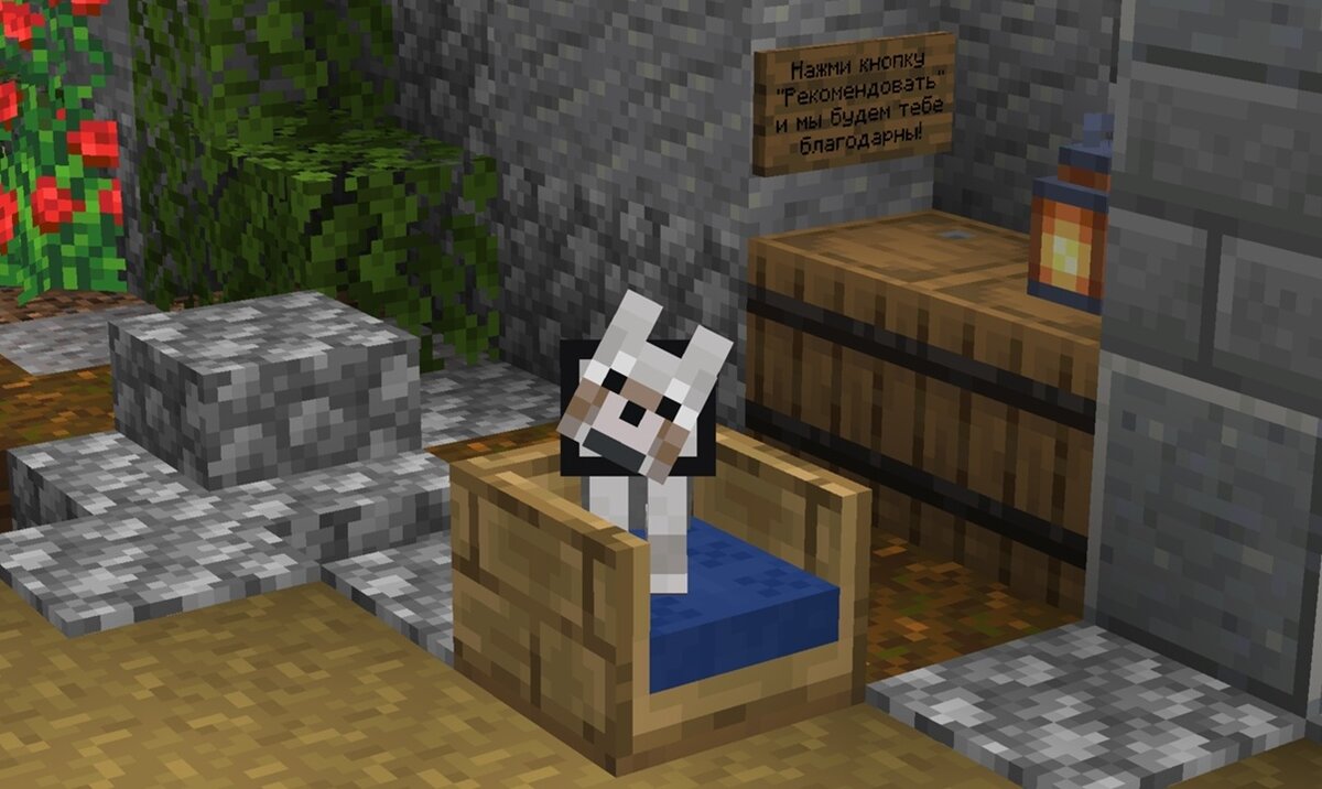 ● В игре должны быть кроватки для собак. Как только вы приручите волка, он будет ложится спать на неё ночью в то время, когда это делает игрок. Функционал кровати для собаки схожий с обычной: если собака умрет, она возродится на ней.