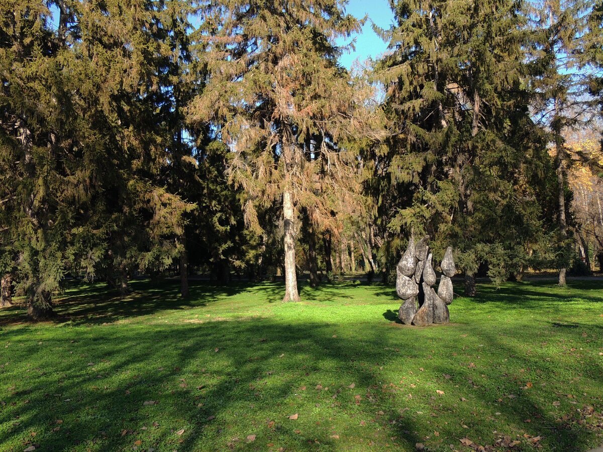 В парке, своя красота: платаны всё никак не могут расстаться со своею листвой: