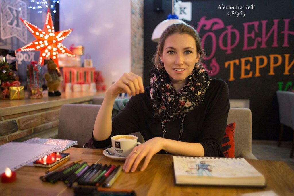 Моя отдушина, мой релакс, мой отдых и вдохновение — это рисование. Зимой мало светлых дней, я так радуюсь, когда выдаётся снежно-белое утро. Тогда я скорее хватаю свои материалы и бегу на уютную веранду кафе, пью ароматный кофе и рисую.