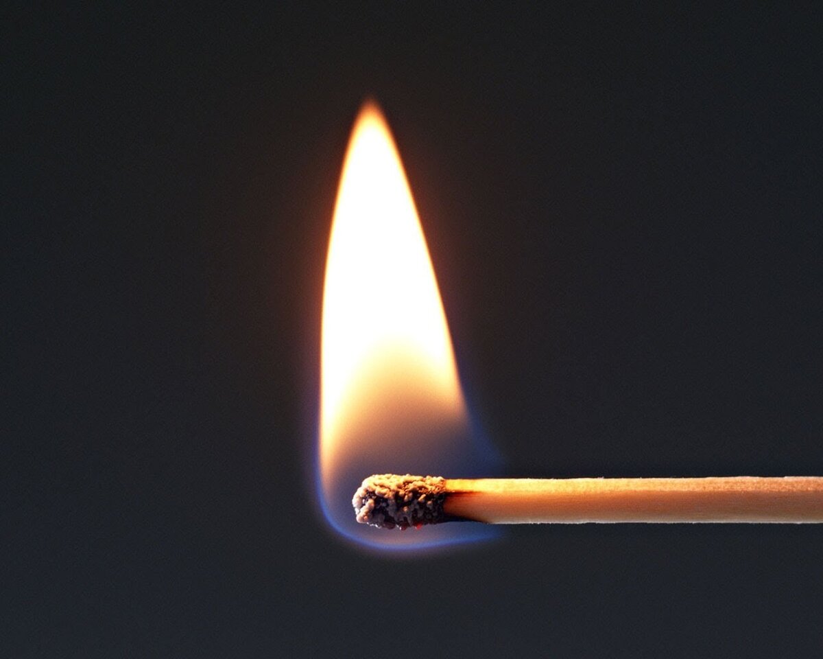 Зажжем спичку. Мы видим пиролиз и дожиг в чистом виде.