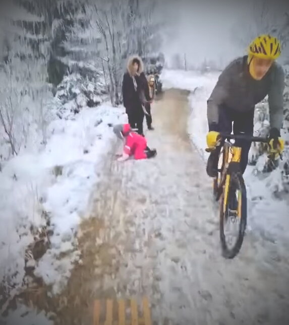 Подобная ситуации произошло в праздничные выходные в городе Вервье в Бельгии. 5-летняя девочка прогуливалась вместе с семьей на заснеженной дорожке на окраине парка. Неожиданно на горизонте появился, движущийся с большой скоростью, велосипедист. Мужчина посигналил в клаксон, чтобы прохожие исчезли с дороги. Но к сожалению, ребенок не успел отойти. В связи с этим, велосипедист пнул 5-ти летнюю девочку в спину. Ребенок упал на землю. Происшествие было записано на телефоне отца девочки. Мужчина утверждает, что после инцидента он пытался остановить велосипедиста, но тот уехал, сказав, что нужно было убраться с дороги, так как он ехал.