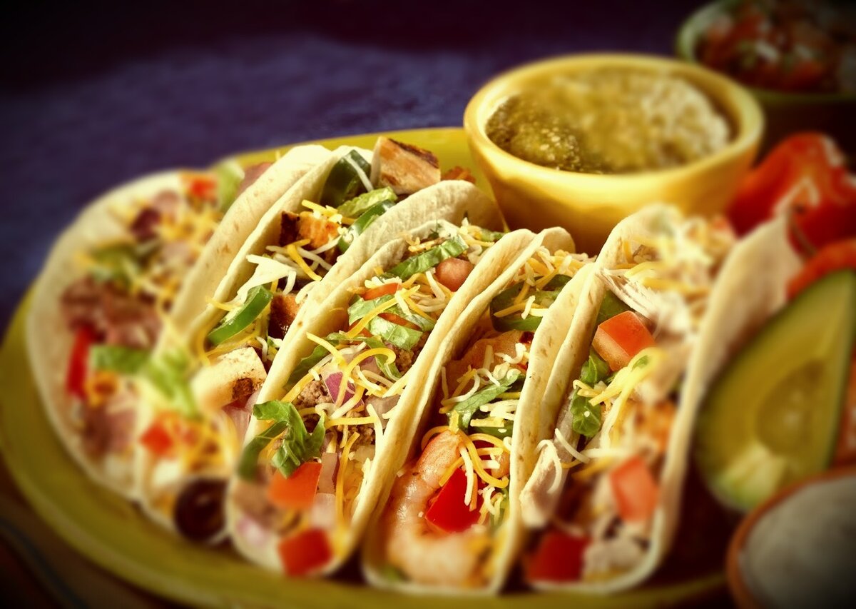 Именно из этой страны впервые были открыты томаты, кукуруза и еще множество бобовых культур, но чем же все-таки угощает страна вечного лета и танцев? Одним из самых известных блюд Мексики являетс - Тако. Это кукурузная лепешка которая включает в себя несколько видов мяса и опять же бобовых культур, где притяным дополнением являются креветки и прочие морские ингридиенты.