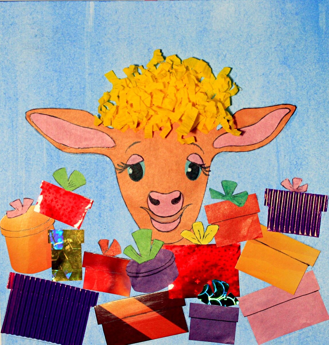У теленка так много подарков, что среди них мы видели только его мордочку . Ее и будем делать.