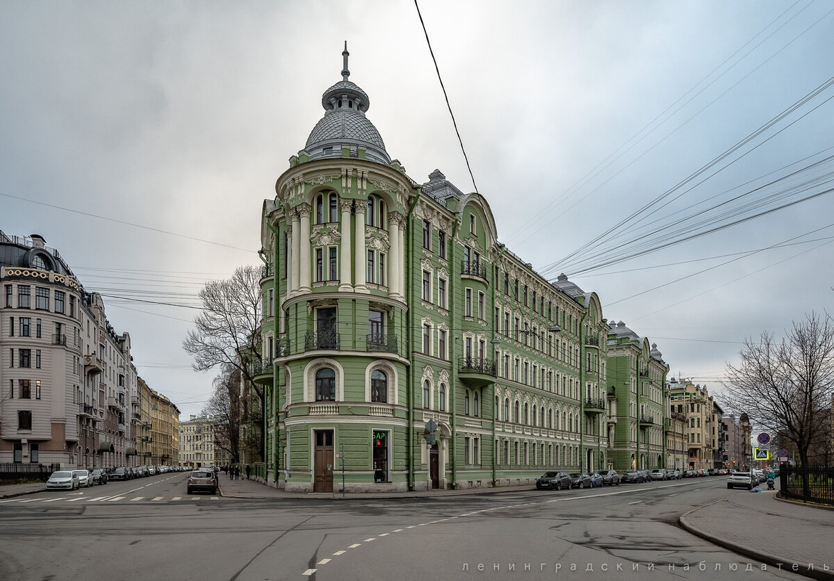 В 1908 году на Матвеевской улице (ныне улица Ленина) по проекту архитектора Сергея Григорьевича Гингера началось строительство ещё одного доходного дома братьев Колобовых. На мой взгляд, это один из самых красивых домов Петроградской стороны, а возможно и всего Петербурга.