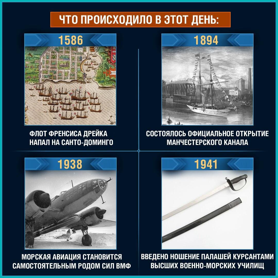 В этот день в 1894 году состоялось торжественное открытие для движения Манчестерского судоходного канала, ставшего крупнейшим судоходным каналом в мире. Благодаря этому событию, новый порт города Манчестера быстро стал третьим по загруженности портом Великобритании, а местная промышленность, включая судостроительную отрасль, получила мощнейший толчок к развитию.