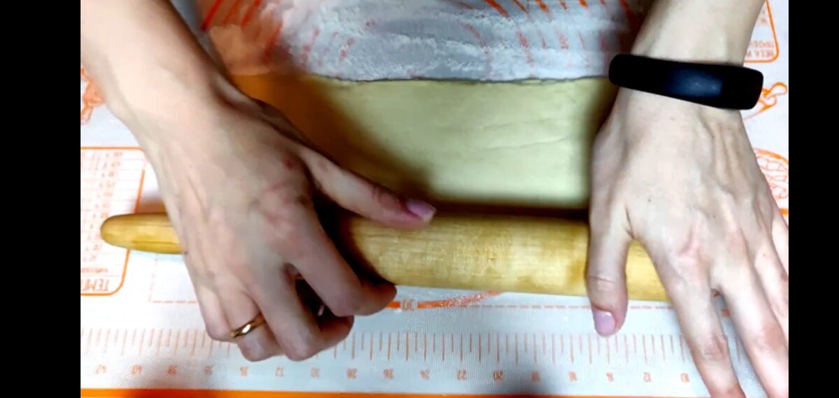Слоёное тесто у меня с магазина. Размораживаем его и тонко раскатываем.
