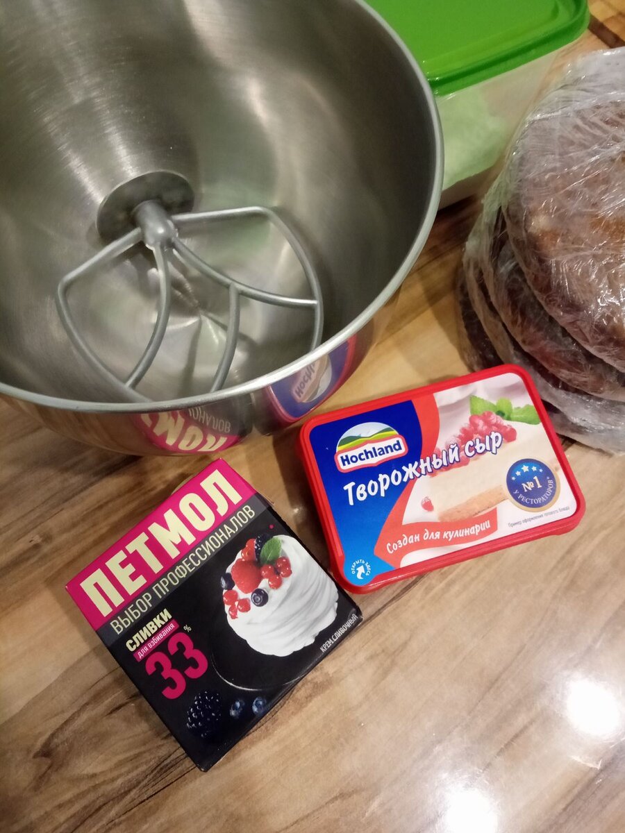 Теперь нужно сделать крем. У меня это будем крем-чиз на сливках.