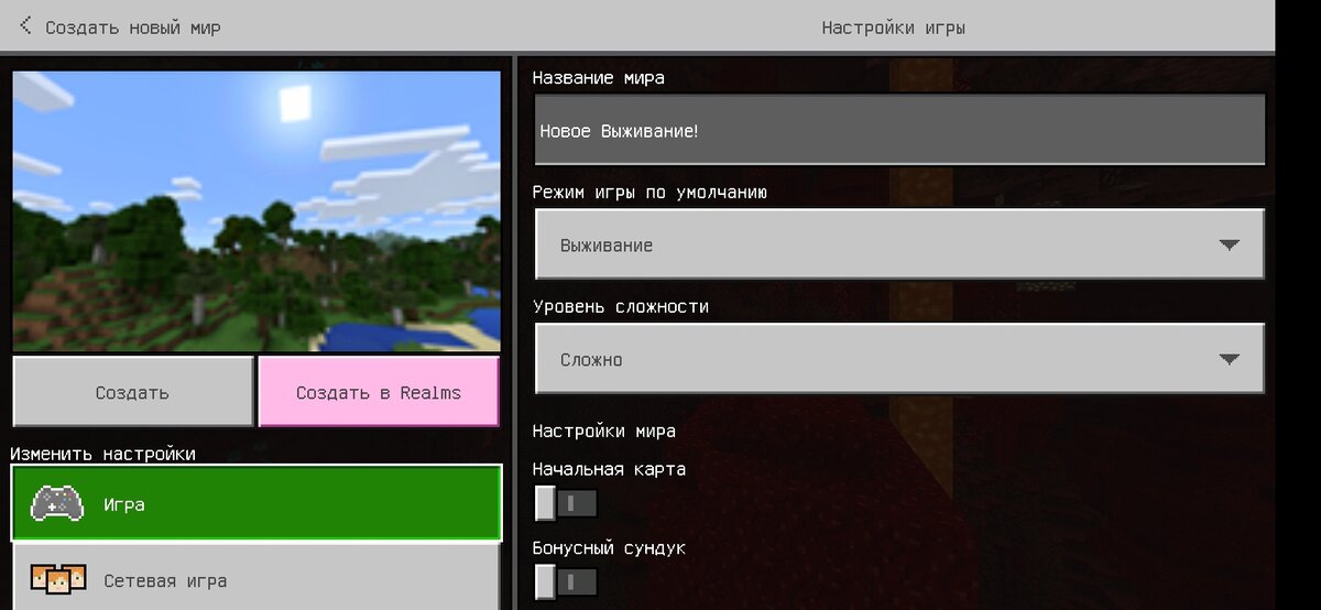 Итак, я создал новый мир на версии 1.16.201. Уровень сложности, как всегда, "Сложно", поле для сида оставил пустым.