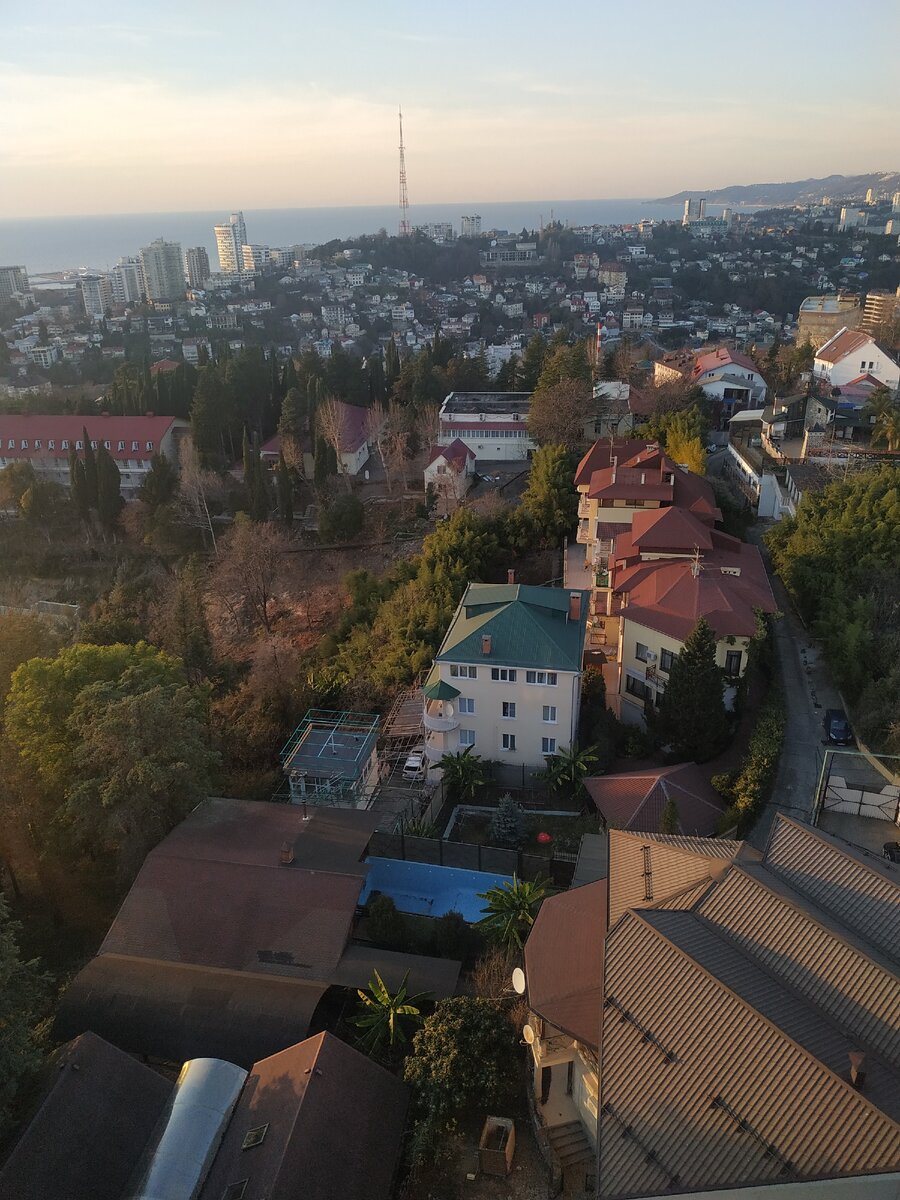Там открывается панорамный вид Сочи со всех сторон. Видно, и море, и плотную застройку Сочи, и, что интереснее, заснеженные горы Красной Поляны. Отсюда видна даже самая известная смотровая площадка Сочи, расположенная на горе Ахун! Виды открываются живописные, посетить стоит!