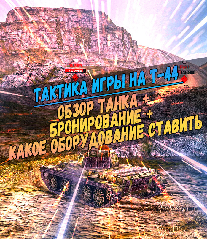 На Т-44 нужно держаться во второй линии (На горе, позади остальных, в кустах и т.д.), но так чтобы в любой момент успеть приехать помочь соратникам в ближнем бою, тогда когда стрельба на второй линии уже не принесет пользы для команды. На второй линии это не говорит, что нужно играть как ПТ, можно просто стоять позади остальных и откатываясь, подкатываюсь стрелять от башни, но в момент прорыва ехать вместе со своими товарищами на СТ и помогать им!