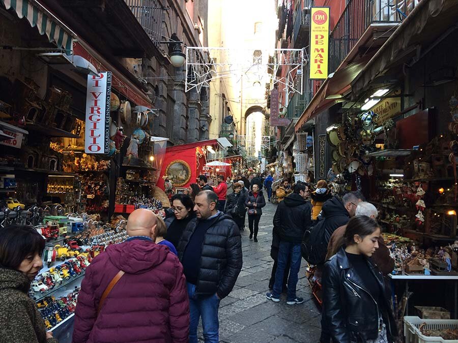 Презепе – это одна из католических рождественских традиций Италии. В начале декабря, когда во всей стране начинается подготовка к рождественским праздникам, улицы и площади городов расцвечиваются разноцветными огнями, украшаются еловыми гирляндами и блестящими шариками. В каждом или почти каждом магазине стоят причудливо наряженные елочки, открыты ярмарки и рынки, где продаются региональные продукты и, самое главное, новогодние украшения и подарки к Рождеству. В каждом итальянском городе есть места, связанные именно с Рождеством и Новым годом, и где покупателей в это предпраздничное время больше всего. В Неаполе таким местом является улица Сан-Григорио Армено.