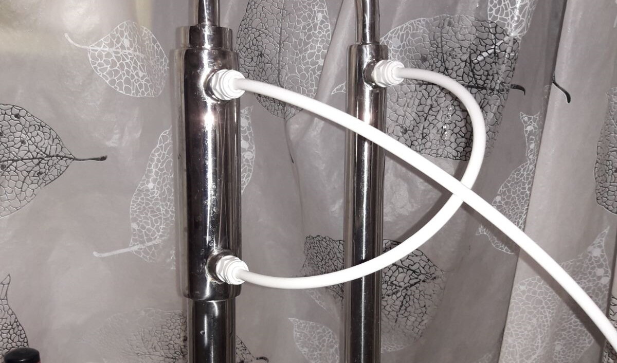Подготовка аппарата, кроме основных действий, предусматривает заполнение царги медными спиральками и правильное подсоединение системы охлаждения. Чтобы спиральки не выпали, в начало и конец трубы я вставил по одному пыжу, сделанному из насадки Панченкова. Система охлаждения будет задействовать как холодильник, так дефлегматор. Дефлегматор служит, как вспомогательное устройство для недопущении попадания флегмы (вредных примесей) в готовый продукт.