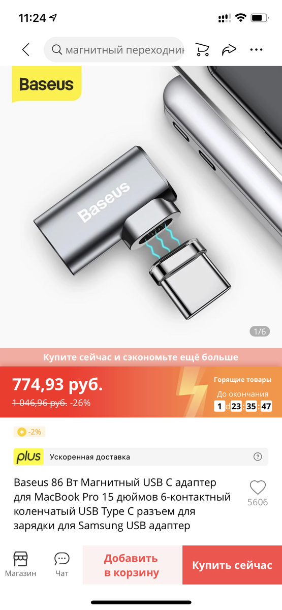 однако проблему легко решить. Случайно наткнулся на магнитный адаптер Baseus, стоимость в районе 700 рублей при заказе с алиэкспресс