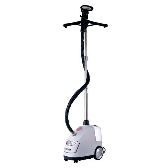 Устройство для вертикального отпаривания одежды с широким спектром действия. Помимо главной своей функции аппарат может работать как дезинфектор или увлажнитель. Потребляемая мощность относительно небольшая – 1500 Вт. Отдача в отпаривании – высокая. Создаваемое давление пара – 0,5 бар, его температура – 98 градусов. Функциональные особенности следующие: регулируемая мощность, автоотключение при перегрузках. Несмотря на портативность модели, бак для воды у неё вместительный. Объём заливаемой жидкости 1,9 л – этого хватает на 55 минут беспрерывной работы.