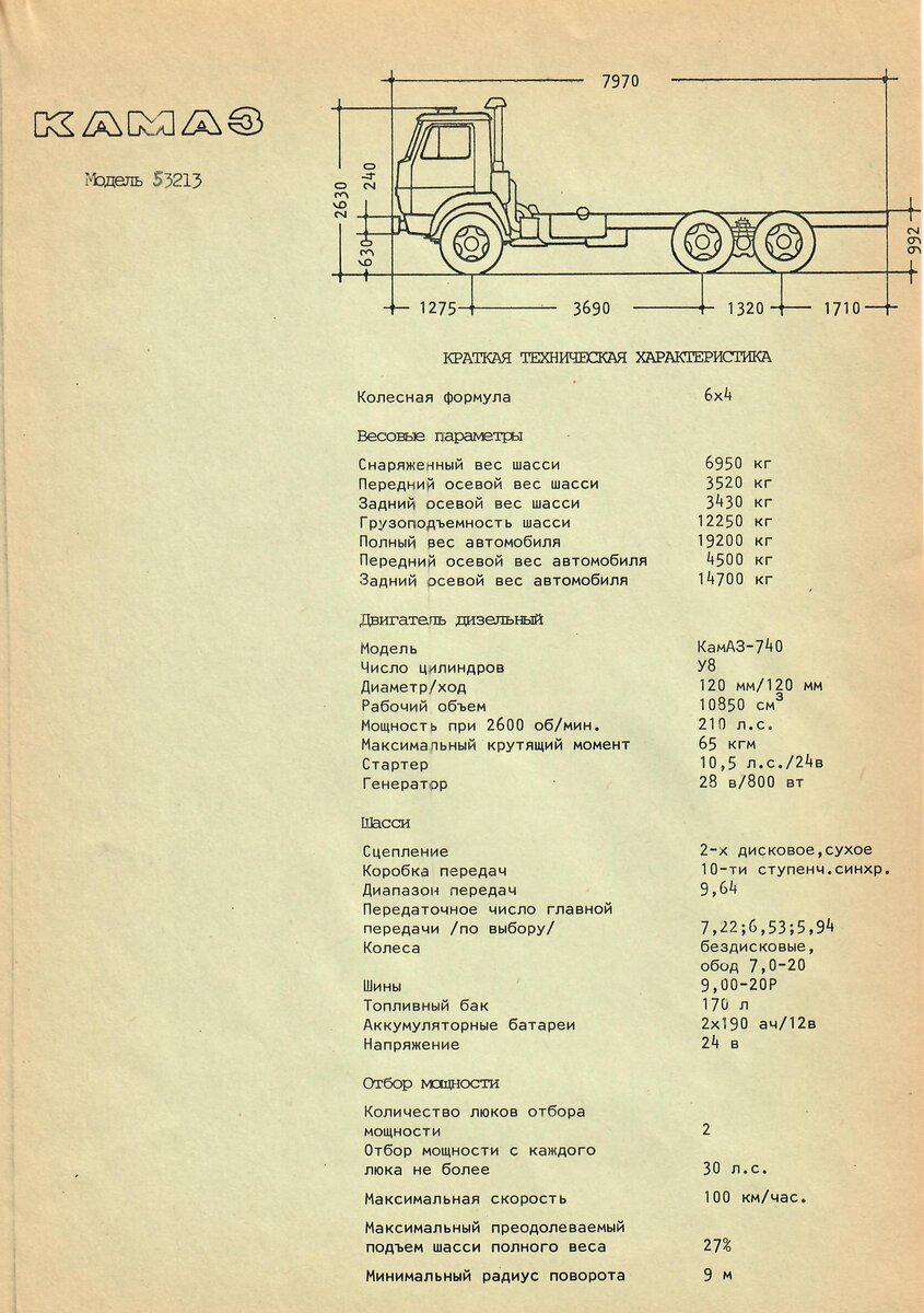 Начало серийному выпуску автомобилей КАМАЗ-53213 было положено в 1979 году.