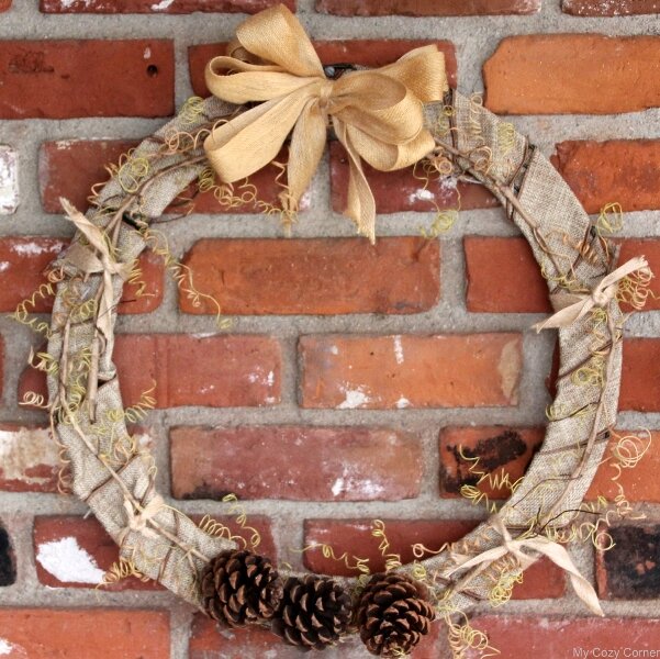 Еще один достаточно простой венок. Необходимо только набрать шишек