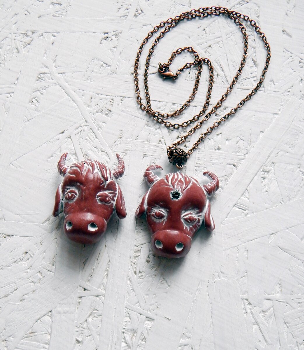 Сегодня леплю голову быка из полимерной глины. Собираю подвеску.