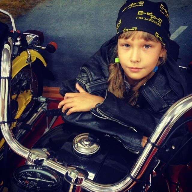 И еще: на память сфотографироваться можно не только рядом с мотоциклами, но и "оседлав железного коня". Правда, во время нашего посещения такой свободный допуск был к двум выставочным экземплярам, но с маленьким приятным бонусом: бандана и неожиданно для меня тяжелая "косуха".