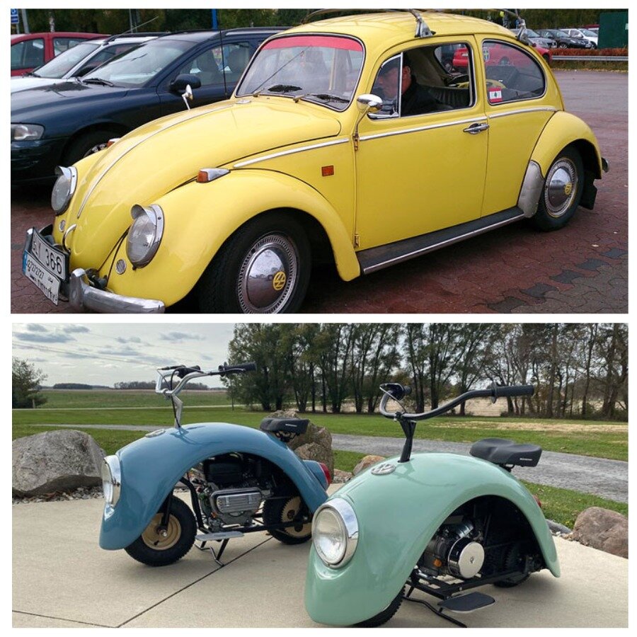 Изобретатель и механик Brent Walter использовал крылья от старого автомобиля «Volkswagen Beetle Type 1», чтобы собрать два мини-скутера с оригинальным дизайном. Эти творения Брент назвал «Volkspod». Пока он сконструировал только две версии своего «фолькспода» в знаковых оттенках оригинального «жука»: светло-зеленого и пастельно-синего цветов. Электрические скутеры вполне функциональны, оснащены